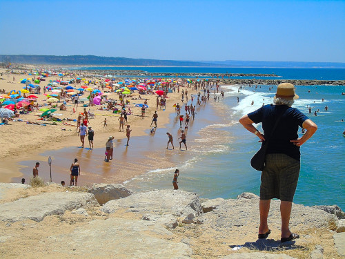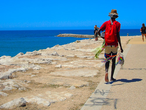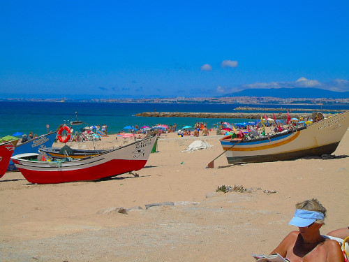 Por isso, fico-me pelas matérias estivais e mostro apenas algumas imagens da Caparica banhada pelo sol neste domingo que se adentrou por Agosto. Nos dias de muita gente na praia não me aventuro. Passeio cá em cima, apanho sol enquanto caminho e vou olhando, de longe, o mar. Não sou capaz de estar na areia rodeada de gente. Tenho um certo lado de bicho-do-mato. E caminhar no meio de uma multidão também não. Ou apanhar um engarrafamento para entrar e sair das praias mais remotas também não. Por isso, antes de irmos petiscar na esplanada do grego, andei como sempre ando, feita turista acidental. O mar muito azul, o céu muito azul, uma aragem que suavizava o calor.