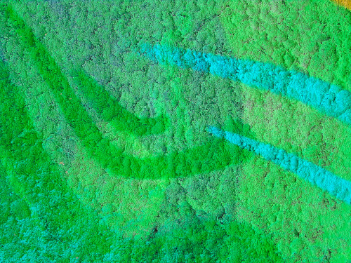 Lá em baixo uma mulher de cabelo encarnado fotografa-as também. E eu fotografo a mulher de cabelo encarnado. Naquele contexto, aquele cabelo parece uma insólita plumagem rubra. Introduz uma nota de cor numa paisagem quase incolor.
